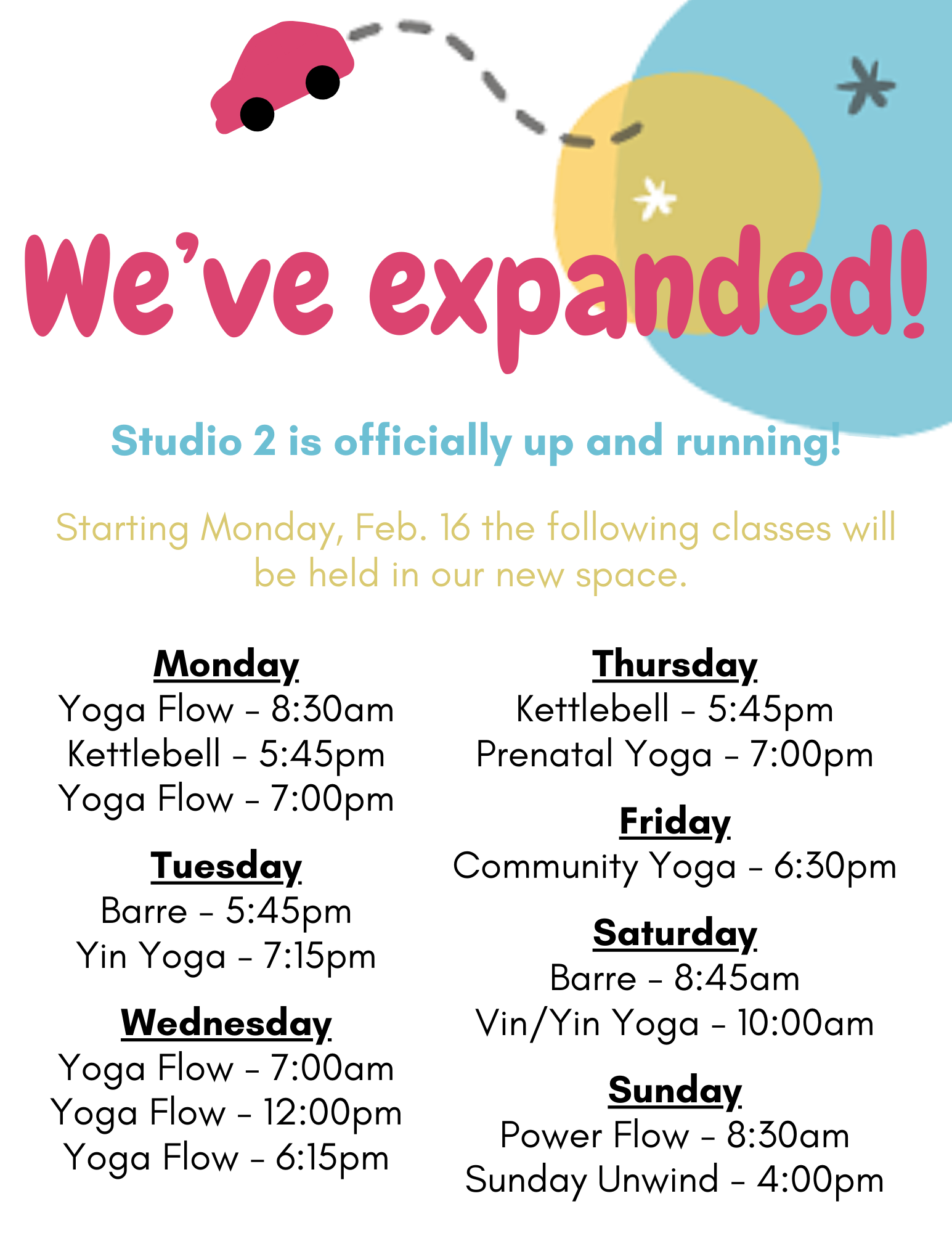 Studio 2 is located just two doors down from the main HSY studio. Starting at our door, go towards Kincaid Rd (Cafe Alma, BP, Goodfellas). Go past the barber shop next door and find the space with light blue walls and ballet barres.
